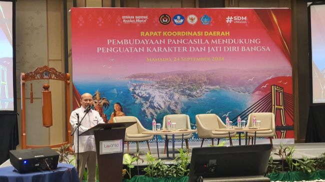 MANADO, Sketsakini.com — Karakter dan sikap mental bangsa Indonesia harus diubah ke arah yang lebih baik, yang berlandaskan nilai-nilai Pancasila melalui penguatan karakter dan jati diri bangsa, dengan harapan nilai-nilai tersebut dapat melebur ke dalam pola pikir, pola kerja, dan pola hidup masyarakat Indonesia.