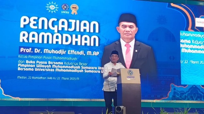 Hal itu disampaikan Muhadjir dalam Pengajian Ramadhan dan Buka Puasa Bersama Pimpinan Wilayah Muhammadiyah Sumatera Utara yang digelar di Universitas Muhammadiyah Sumatera Utara (UMSU), Medan, Sabtu (22/3/2025).